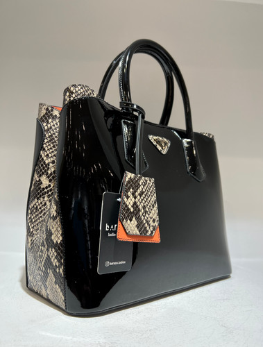 کیف زنانه ورنی مشکی با کناره های پوست ماری
