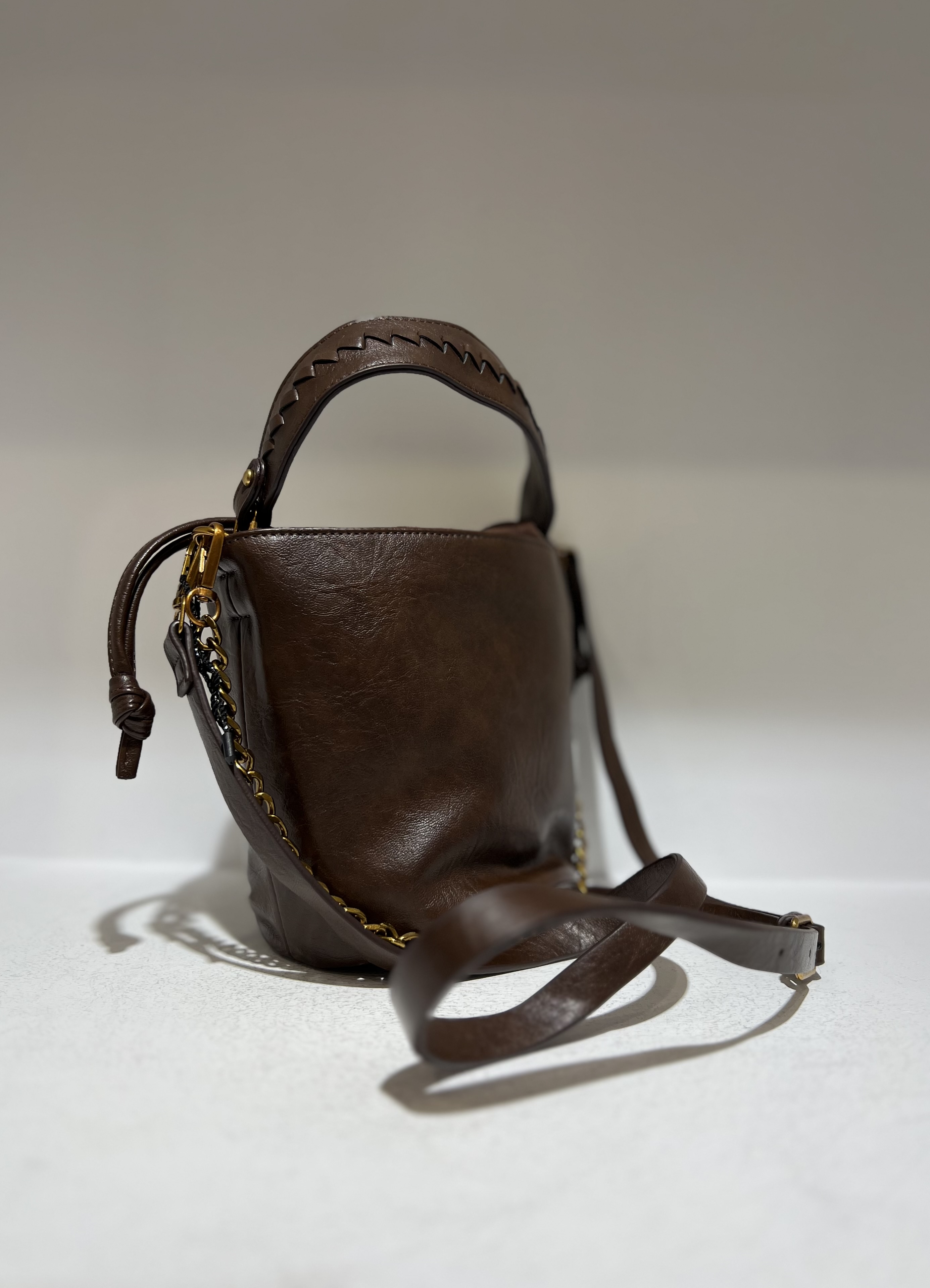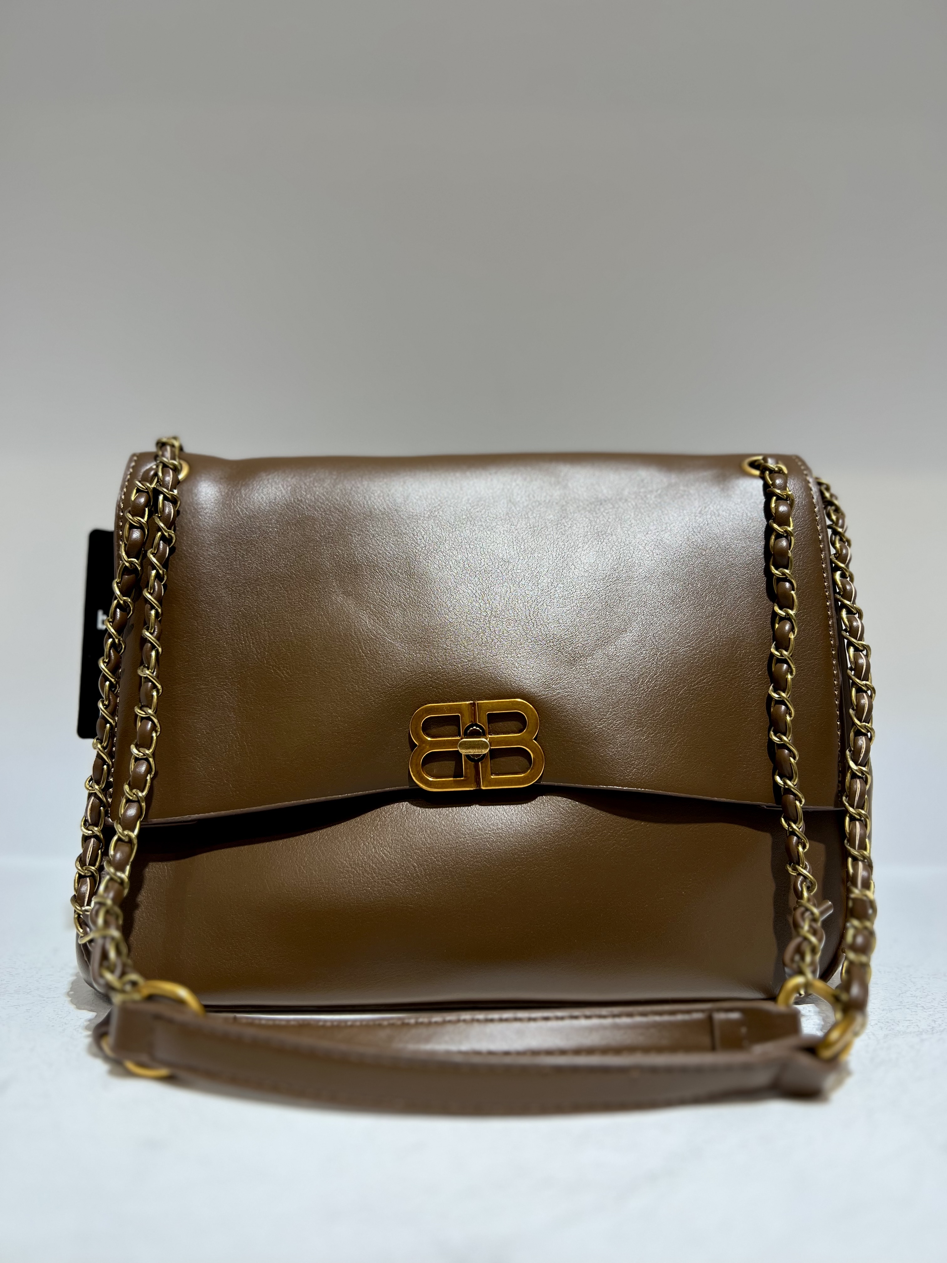 کیف زنانه قهوه ای دوشی BB زنجیر-چرم
