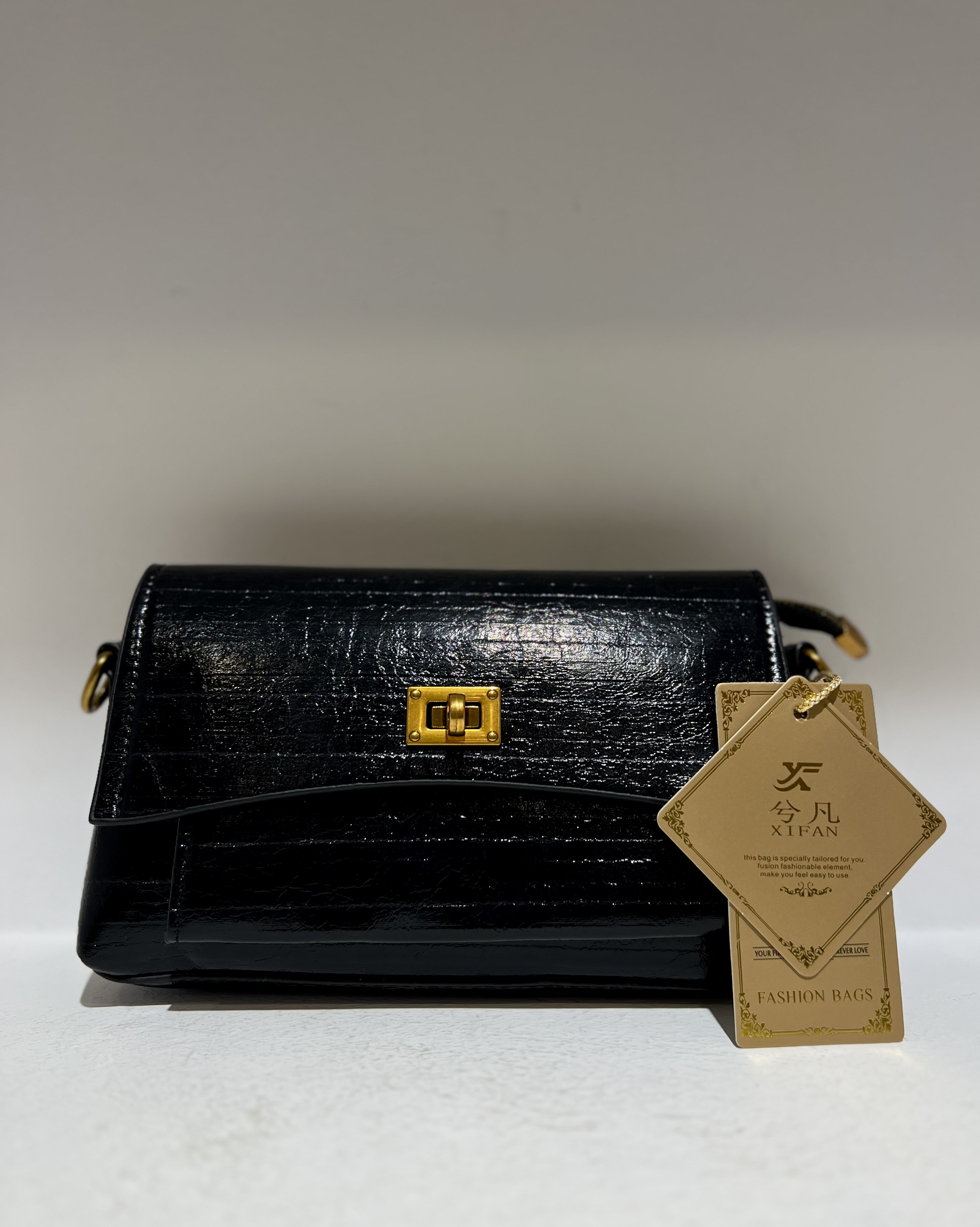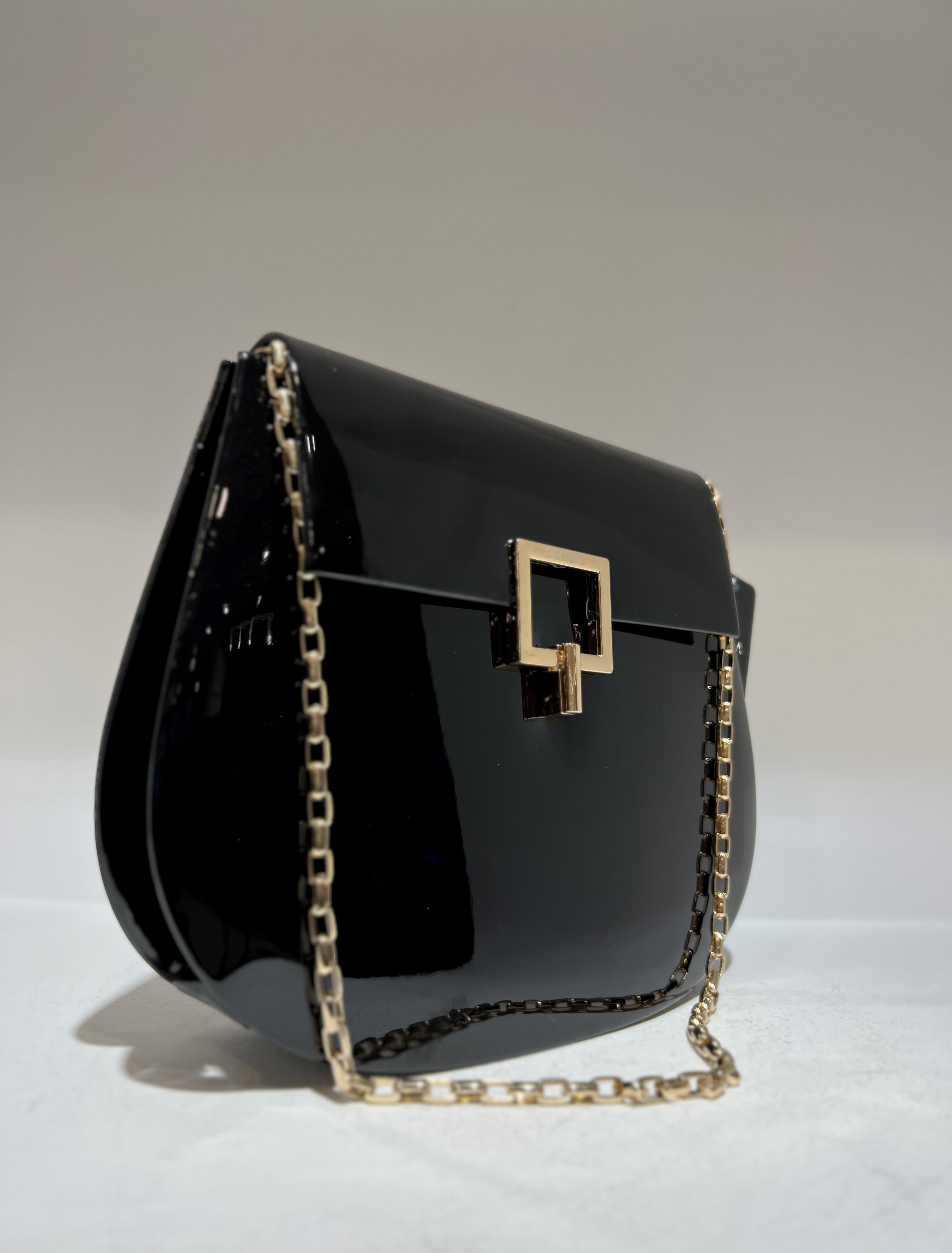 کیف ورنی زنانه با زنجیر دوشی و یراق آلات طلایی