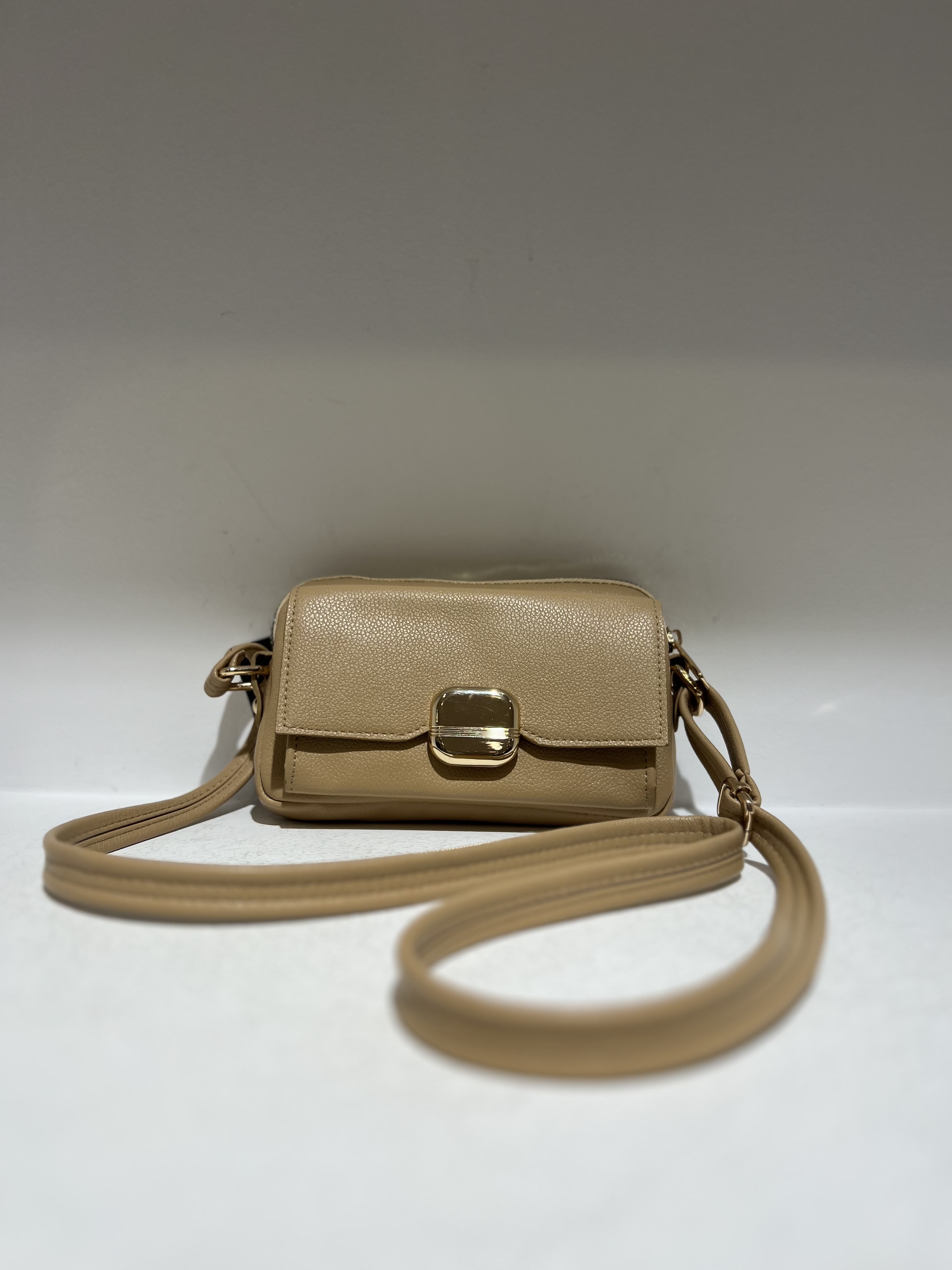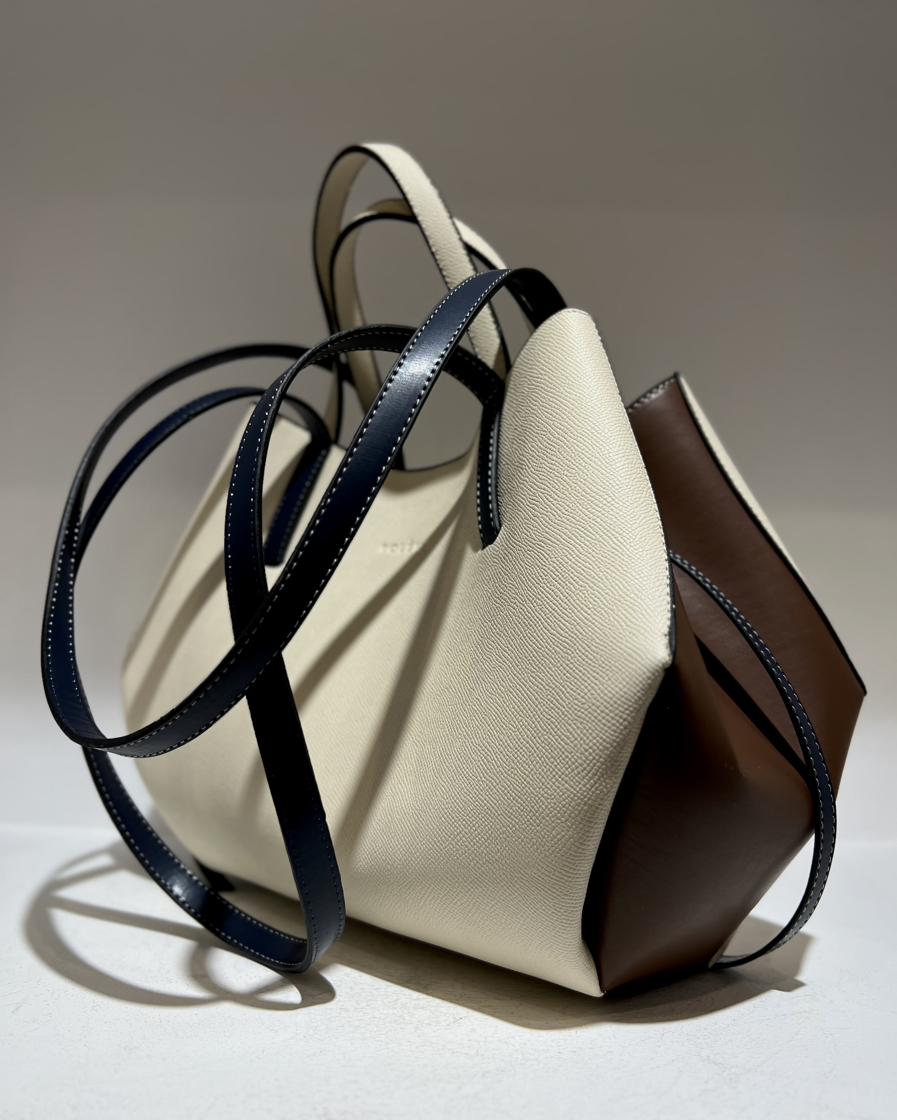 کیف زنانه کرم قهوه ای سورمه ای دو بند polens