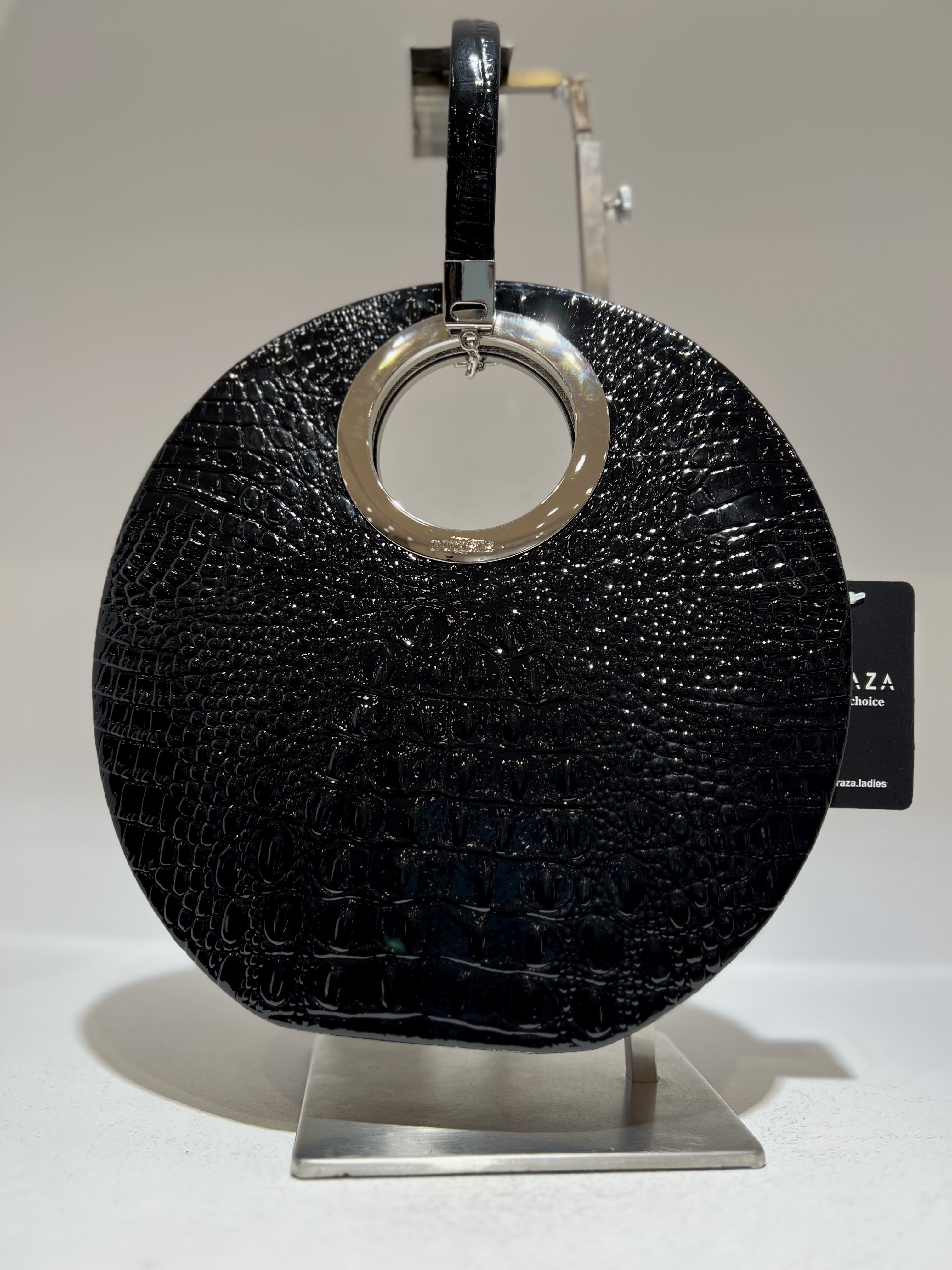 ناموجودکیف زنانه دایرهای طرح کروکو با دسته حلقهای فلزی
