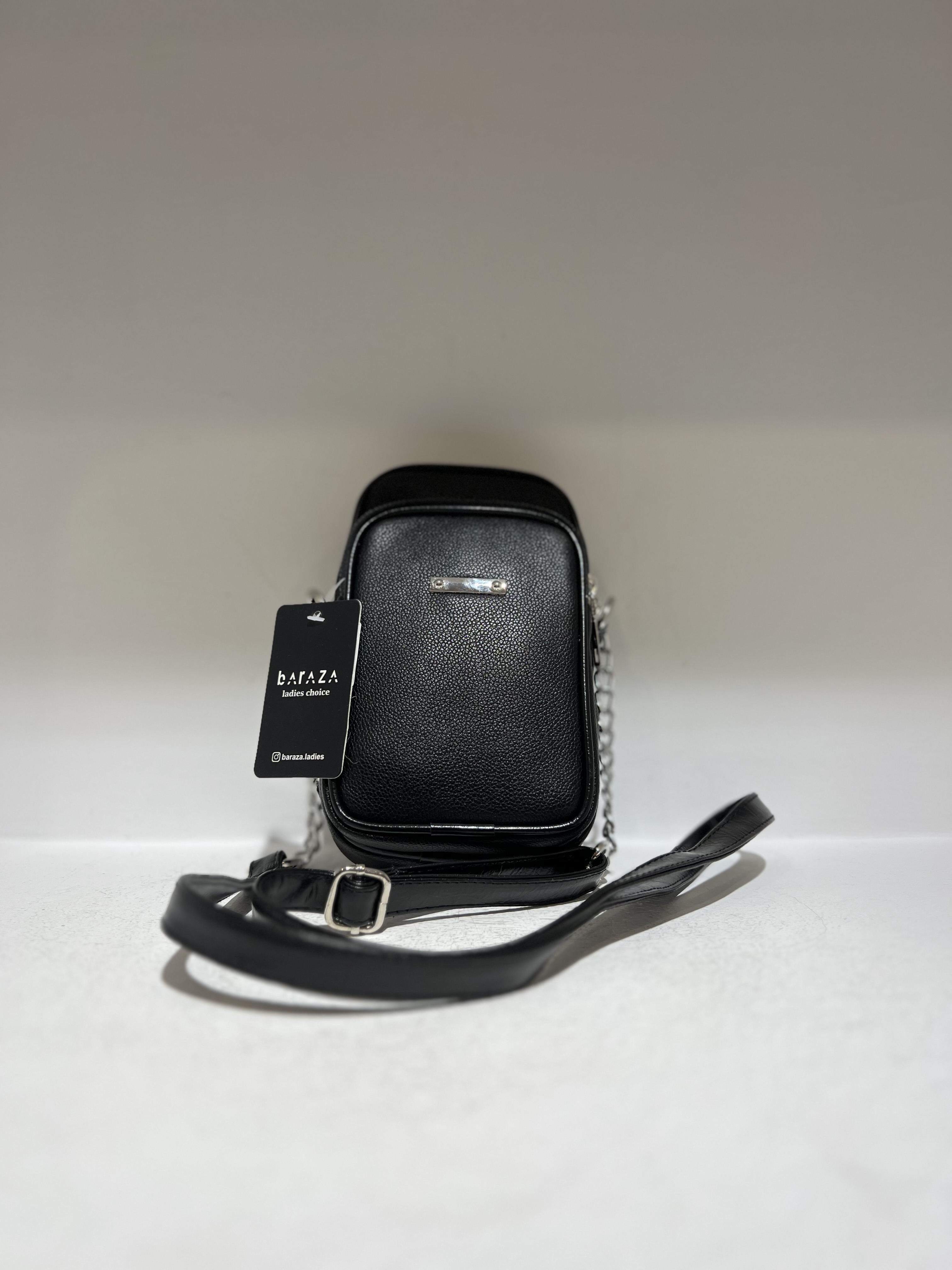 کیف دوشی زنانه مشکی زنجیر نقره ای BB