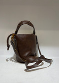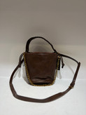 کیف زنانه دوشی استوانه ای قهوه ای با بند زنجیر چرمی