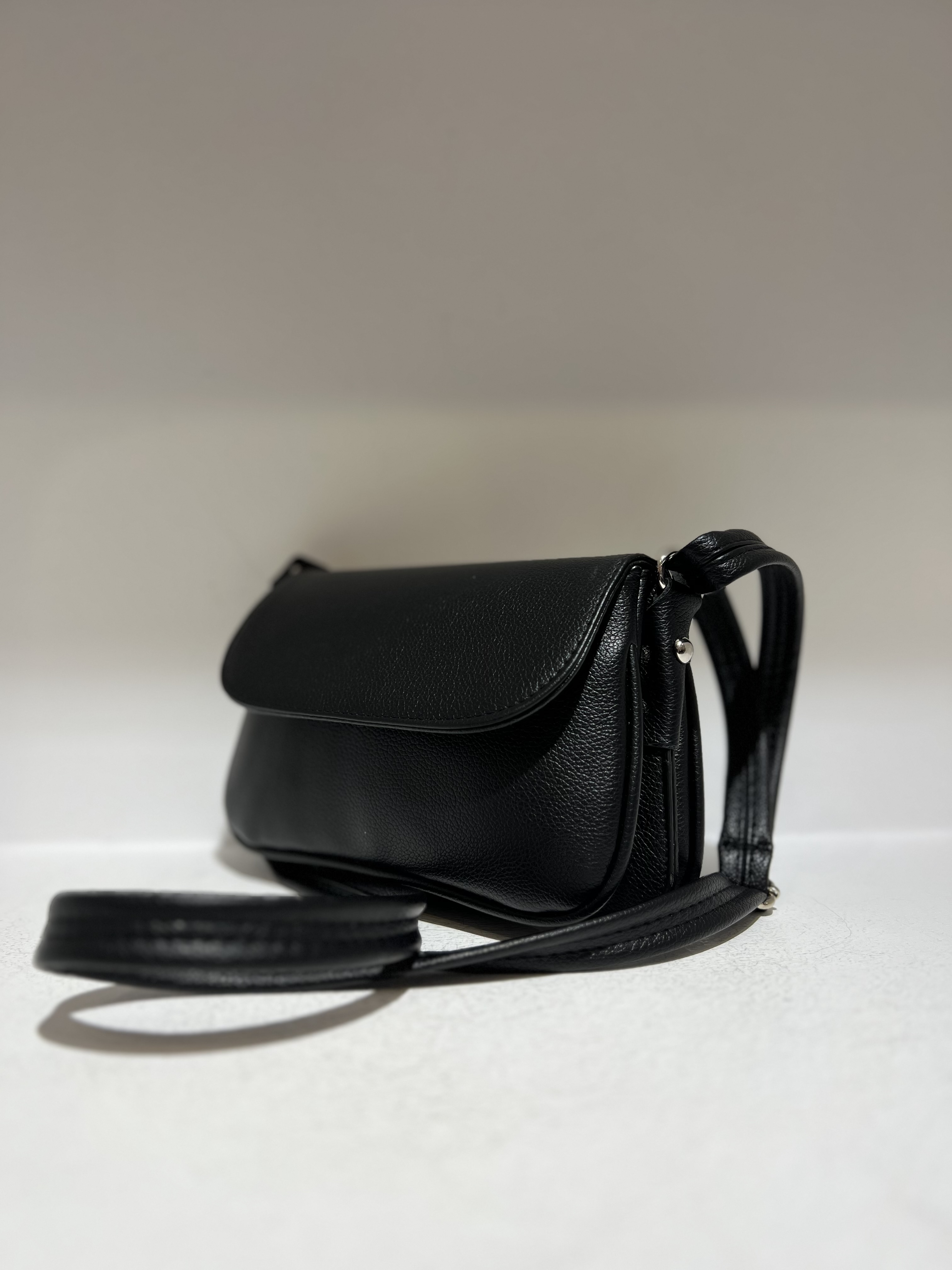 کیف زنانه دوشی با بند چرمی مشکی، مدلی کاربردی و شیک برای استفاده روزمره و نیمهرسمی است. رنگ مشکی کلاسیک در کنار طراحی ساده و خوشفرم، امکان ست شدن با انواع استایل را فراهم میکند.