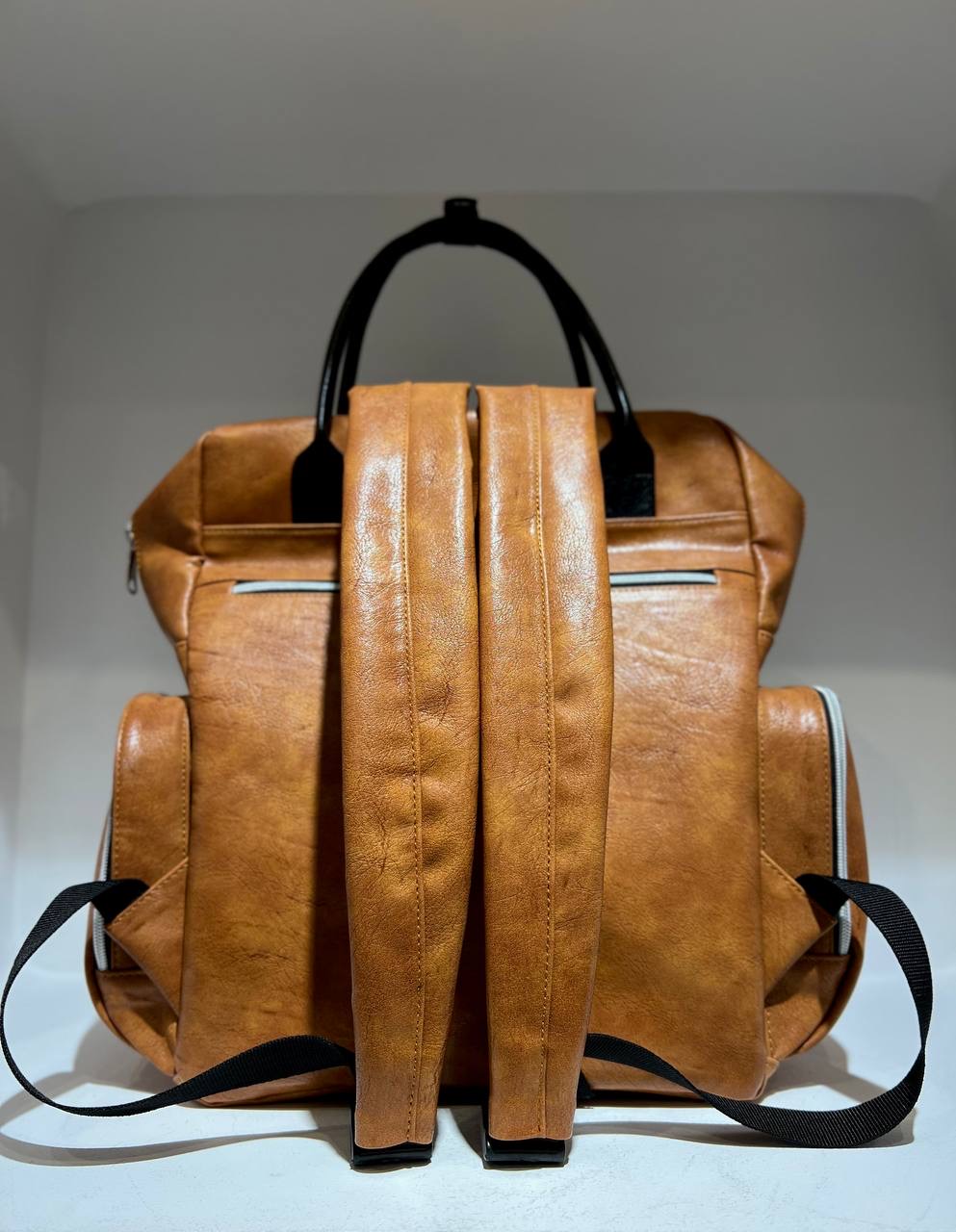 جنس چرمی با کیفیت و رنگ عسلی، ظاهری مدرن و جذاب ایجاد میکند و بندهای قابل تنظیم، راحتی استفاده حتی در طول روز را تضمین میکند. این کوله پشتی انتخابی ایدهآل برای مادران شیکپوش و فعال است. ✨