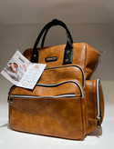 کوله پشتی زنانه مادر و کودک طرح چرم عسلی