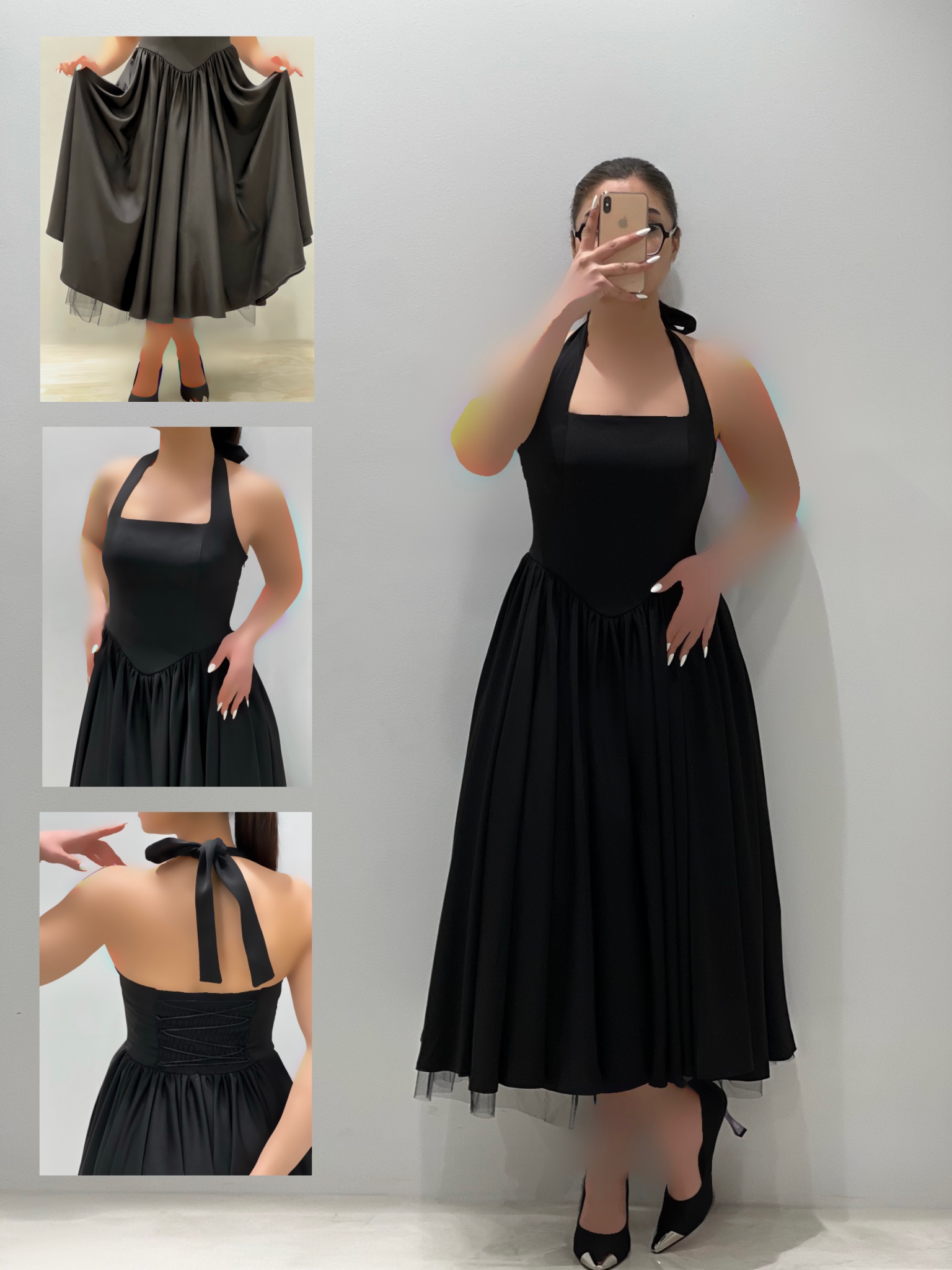 پیراهن مجلسی آستین بلند ماکسی مشکی لمه