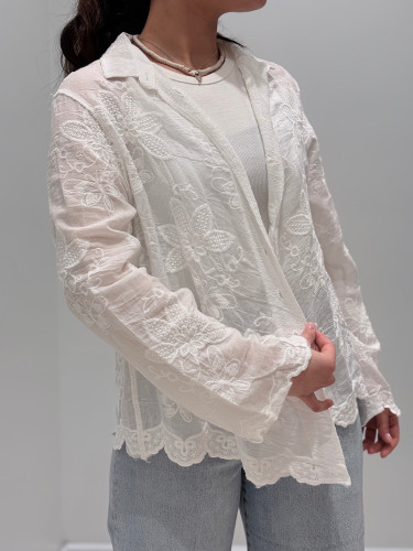 شومیز زنانه مجلسی طرح دار آستین بلند جلو بسته