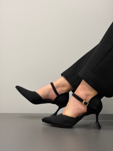 کفش زنانه پاشنه بلند مشکی بافت MANGO